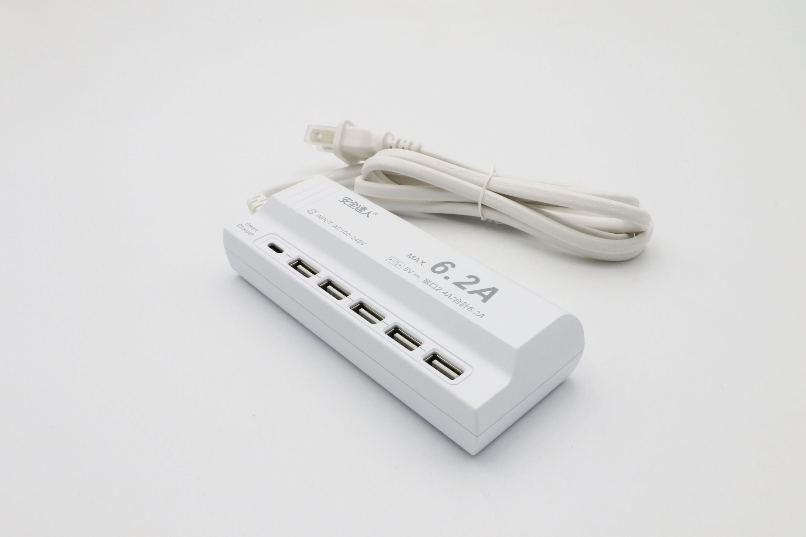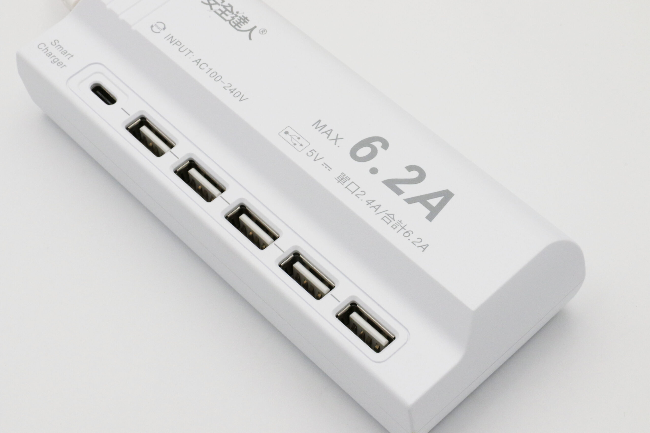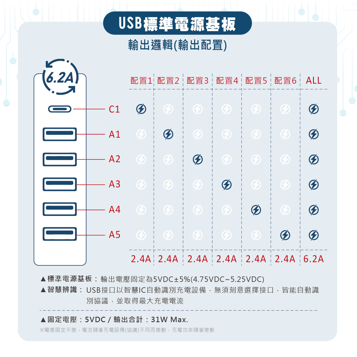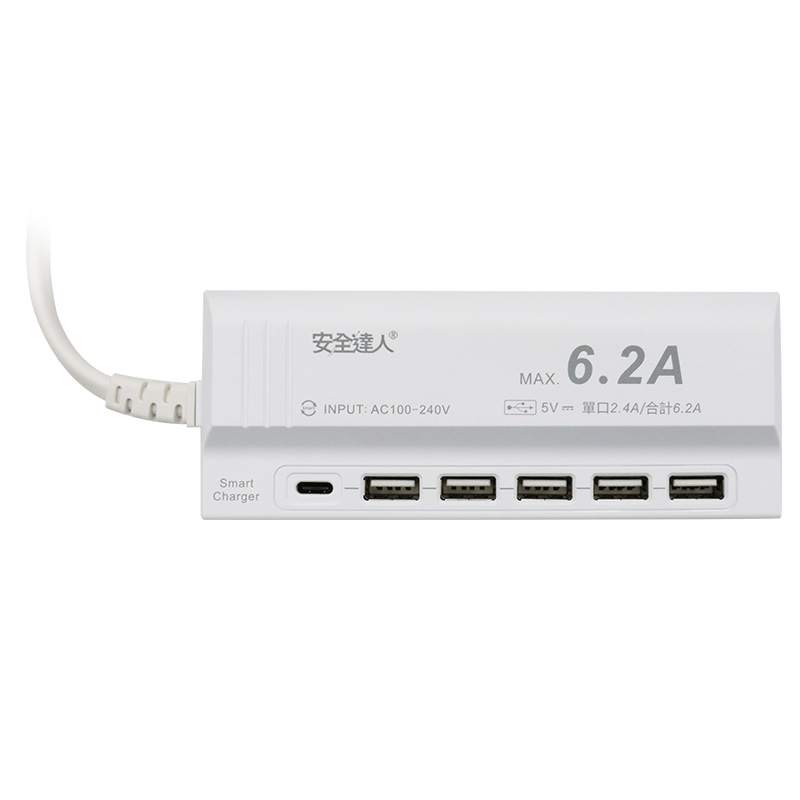 ◆內置Smart charger晶片,具智慧辨識功能,單孔最大輸出電流為6.2A